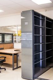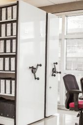 Arquivo Deslizante com acionamento mecânico, possui uma estrutura sofisticada com fechamentos frontais, traseiros, laterais, entre faces e trações dos módulos. Possui uma grande variedade de acabamentos externos que podem ser personalizados conforme o ambiente.