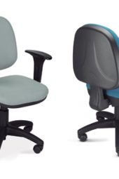 Cadeira LION, com base giratória com acabamento preto, espaldar baixo com assento e encosto em compensado multilaminado, espumas injetadas e contra capas injetadas em polipropileno. Mecanismo back system II . Pistão a gás. Com braços reguláveis pretos. Revestimento em tecido, couro ecológico ou J. Serrano.