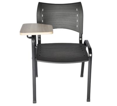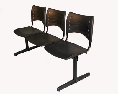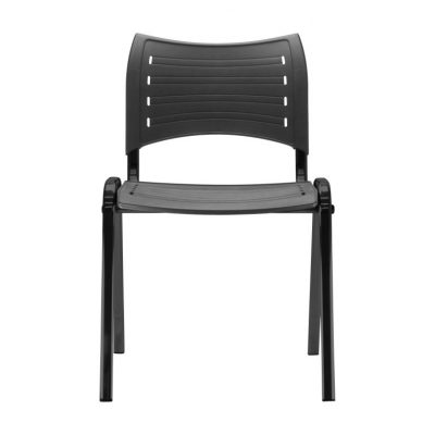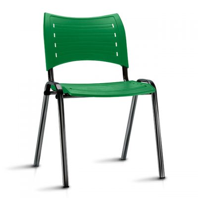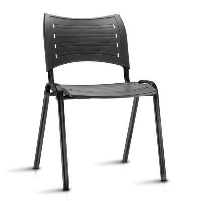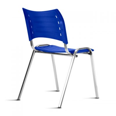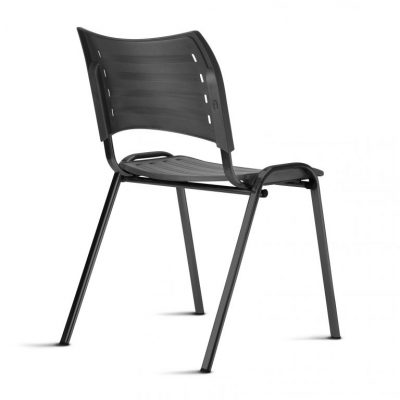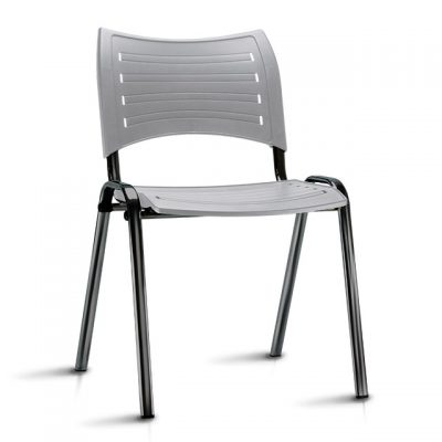 A cadeira ISO, possui assento e encosto injetados em polipropileno e estrutura 4 pés, em formato oblongo e empilhável com acabamento preto, cinza ou cromado; ou ainda com opcional de braços, estrutura com prancheta escamoteável com ou sem gradil, base giratória com ou sem braços, modelo de assento e encosto para tapeçar ou longarinas de 2, 3, 4 ou 5 lugares.