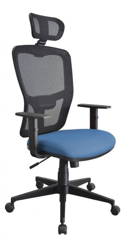 Cadeira Strike Presidente, espaldar alto, com apoio de cabeça, encosto telado,assento em compensado multilaminado e espuma injetada, contra capa em polipropileno. Mecanismo relax com trava e ajuste de tensão. Sistema de ajuste de lombar. Pistão a gás. Base em polipropileno com reforço em fibra de vidro no acabamento preto. Rodízios de polipropileno. Braços reguláveis. Revestimento em tecido Space.
