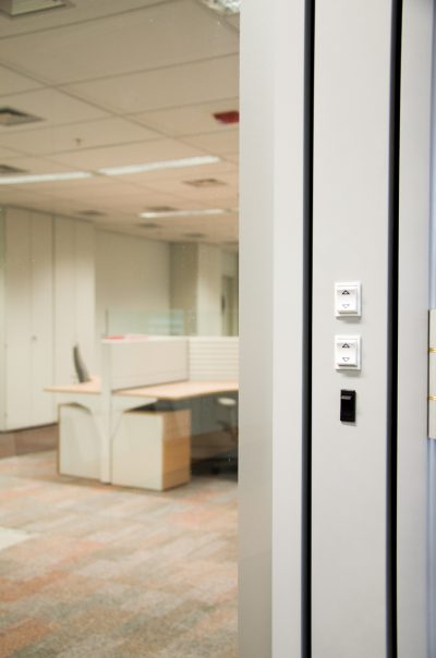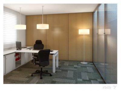 * Torre de eletrificação vertical, rodapé e rodateto horizontal para condução de cabeamento (opcionais). Interruptores, tomadas de elétrica e RJ45 podem ser aplicadas conforme a necessidade.