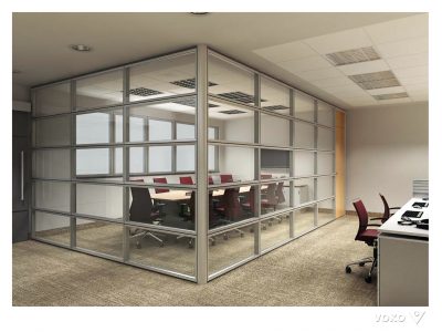 Com sistema de divisórias modulares, que é facilmente desmontável e remontável.