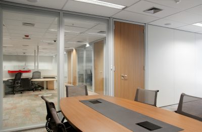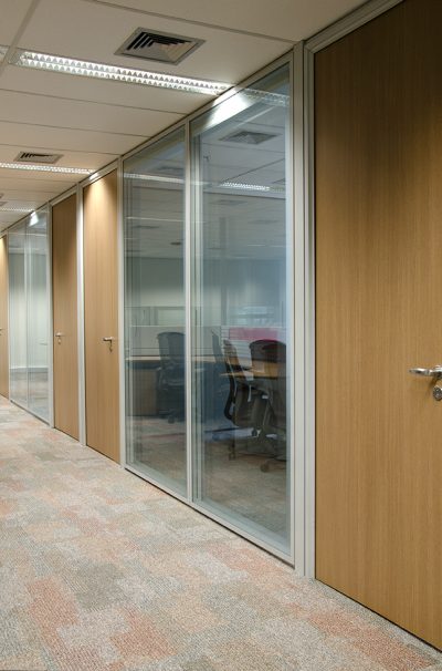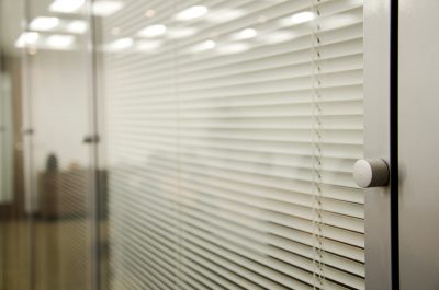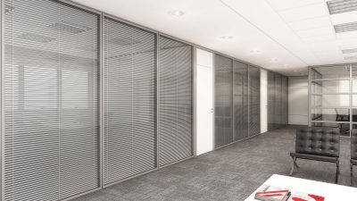 * Isolamento acústico entre as placas cegas; Persianas horizontais em alumínio entre vidros com acionamento através de comando giratório.