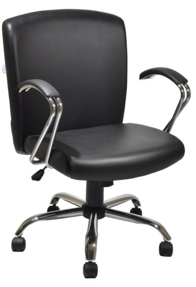 Cadeira Fraque 404, espaldar médio com assento e encosto em compensado multilaminado e espuma injetada. Base giratória cromada. Mecanismo relax com trava e ajuste de tensão. Pistão a gás. Braços fixos cromados.