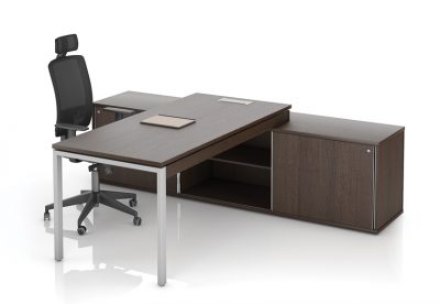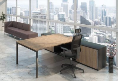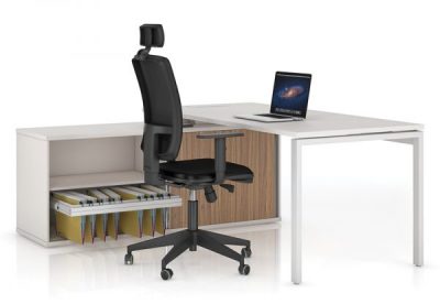 Podendo também ser composta com credenza a linha dispõe de diferentes profundidades e comprimentos. Conta com passagem interna de cabeamento, caixas de conectividade individuais e uma gama de acessórios, atendendo às necessidades individuais.