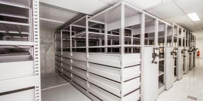 Arquivo Deslizante com acionamento mecânico, possui uma estrutura com fechamentos frontais, traseiros, laterais e travessas estabilizadoras. Em sua versão Plus acrescenta-se os fechamentos entre faces e frações dos módulos.