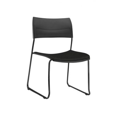 Cadeira Modelo Nina, com estrutura plástica, assento e encosto preto. Sem braços. Base Preta.