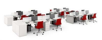 A característica principal deste sistema é a facilidade de acrescer ou diminuir as estações de trabalho sem a troca de estrutura. Com tampos com diversas dimensões podendo ser individuais, duplos, de cabeceira ou semicirculares.