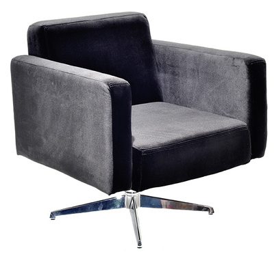 A Poltrona Square possui estrutura de assento e encosto em madeira de 15 mm e espumas laminadas de alta densidade. Base giratória cromada em formato ”X”.